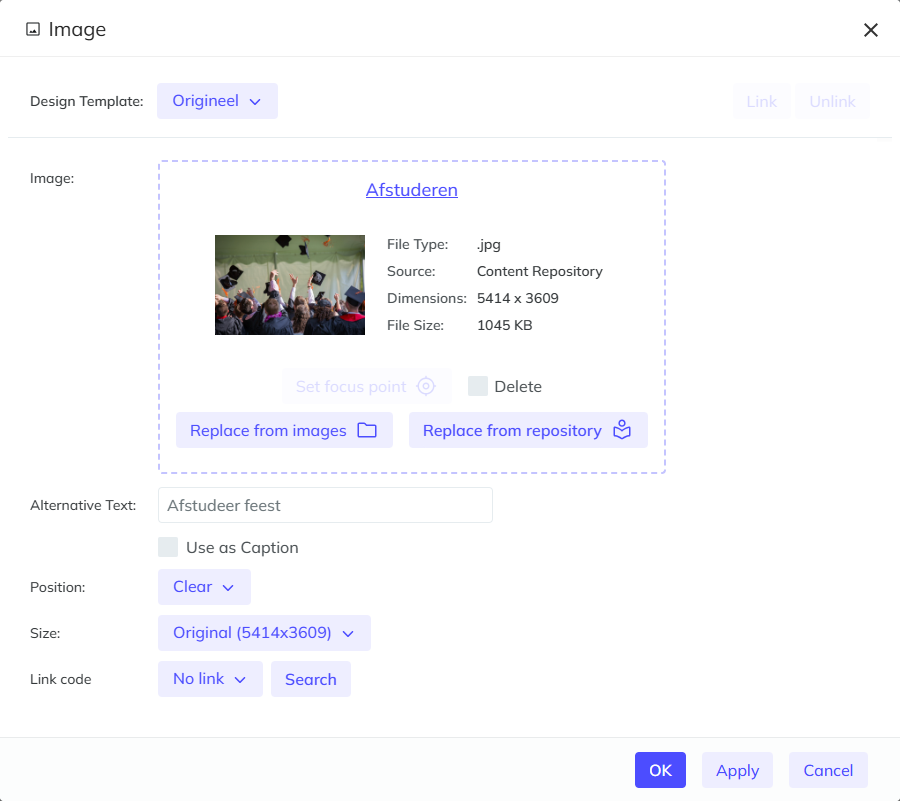 An example of this is the properties dialog for an image element, which is now displayed as follows: